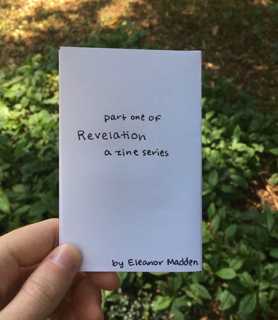 Below I’ll describe my thinking and why I chose to make the zines the way I did. Mostly this is just a way to justify having a blog post dedicated to these zines, so if you want to just look at the pictures without reading why they are the way they are that is not an incomplete way to consume them. I should also note that the title for the zine series, “Revelation”, comes from my best friend. She used the word to describe my situation and I thought it was perfect.